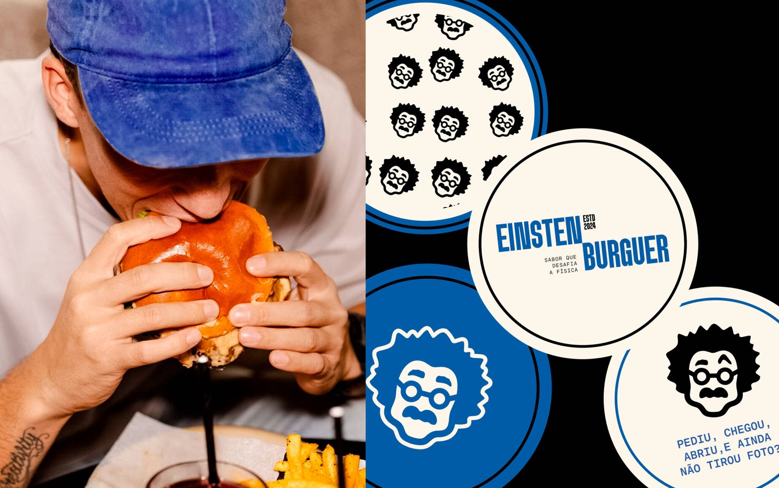 O Einsten Burger se tornou um case de disrupção estética e narrativa no setor de alimentação. Com design autoral, tom provocador e presença digital inconfundível, a marca redefine o conceito de fast food, mostrando que pensar diferente também pode ter gosto de inovação.